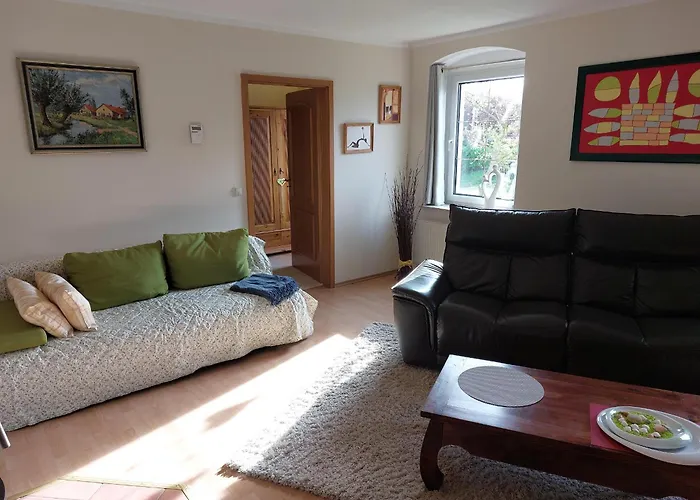 De 1-slaapkamer Fewo Frieda Villa ligt binnen 10-minuten rijafstand van Potzlower See en nodigt gasten uit om te genieten van een patio.